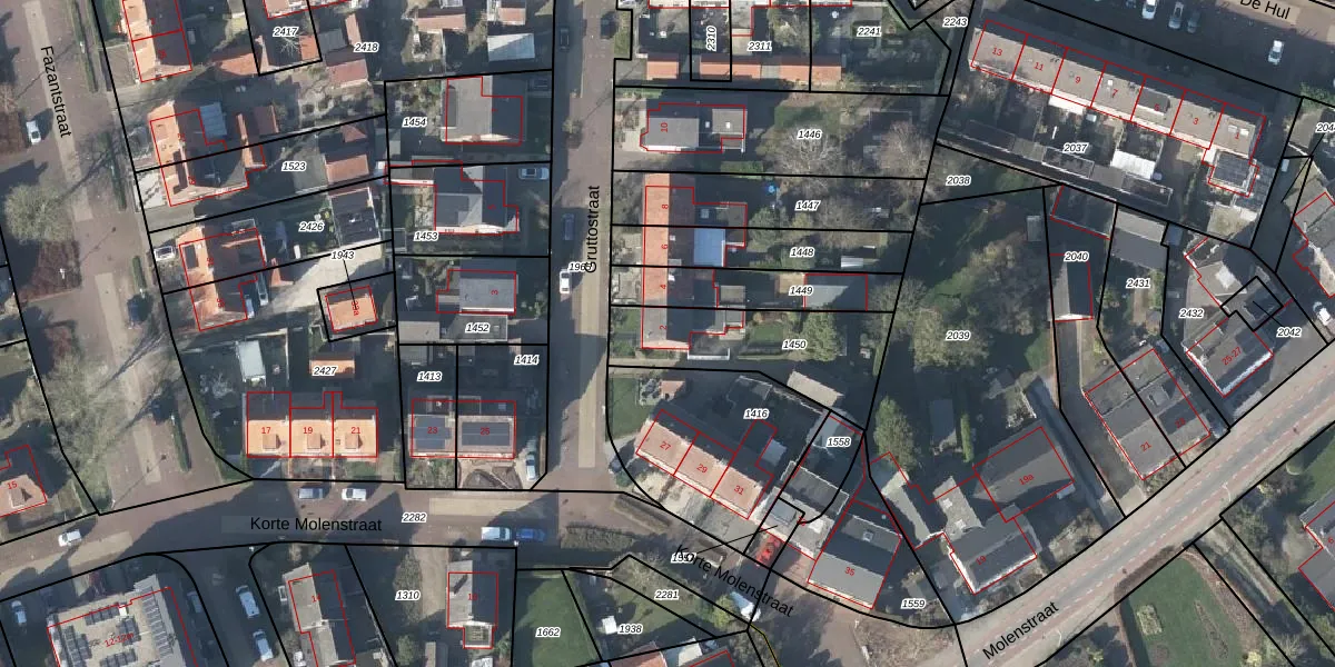 Het perceel waarop Gruttostraat 2 staat heeft een oppervlakte van 460 m². Dit is een groot perceel. De perceeloppervlakte wordt geregistreerd door het Kadaster. Gedetailleerde informatie over de maten van dit perceel kunt u vinden in het rapport Kadastrale kaart met maatvoering van Gruttostraat 2.