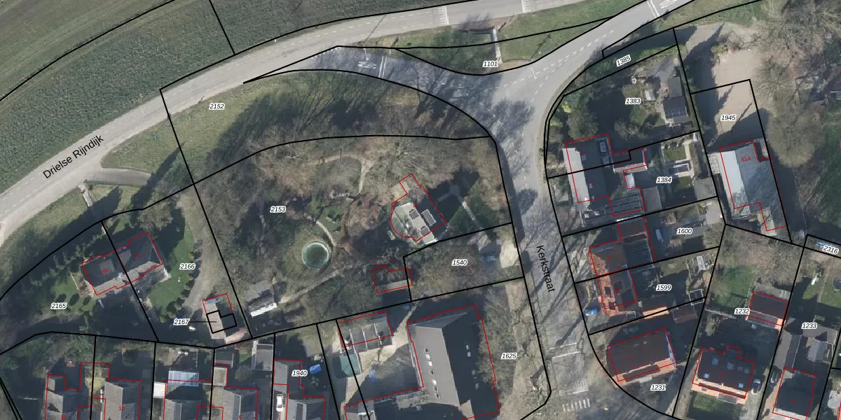 Kerkstraat 2 is gelegen op kadastraal perceel DRI00C2153. Deze kadastrale aanduiding is uniek en wordt gebruikt door het Kadaster om eigendomsrechten en andere zakelijke rechten vast te leggen. Het perceel maakt onderdeel uit van de kadastrale gemeente Driel.