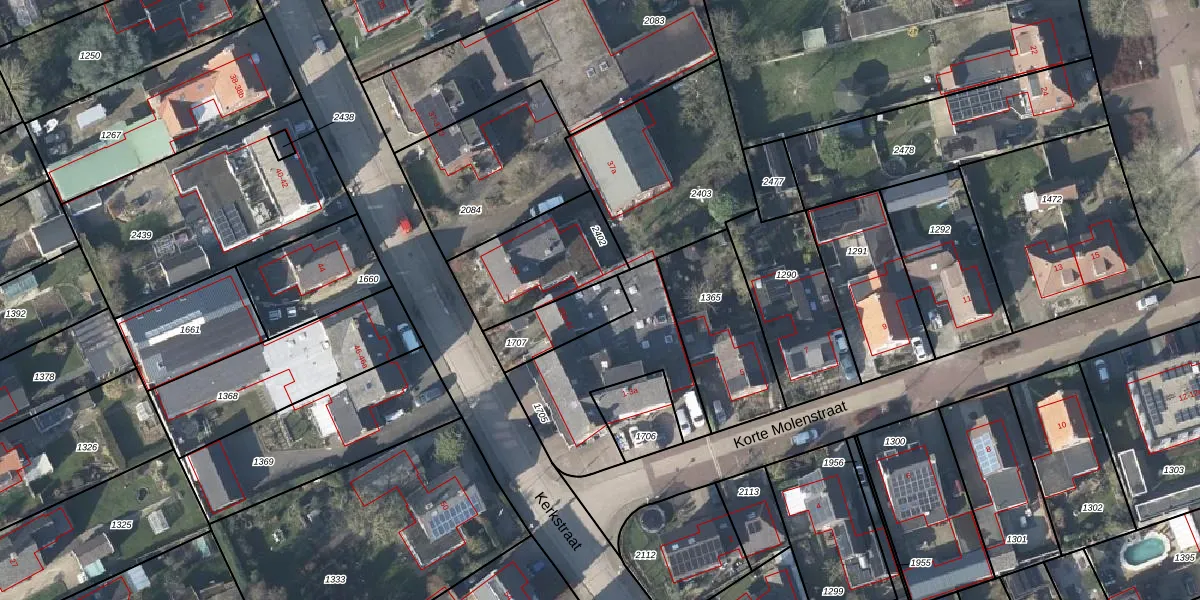 Kerkstraat 39-b is gelegen op kadastraal perceel DRI00C1707. Deze kadastrale aanduiding is uniek en wordt gebruikt door het Kadaster om eigendomsrechten en andere zakelijke rechten vast te leggen. Het perceel maakt onderdeel uit van de kadastrale gemeente Driel.