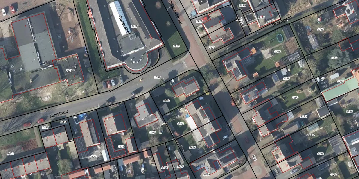 Het perceel waarop Nuijstraat 1 staat heeft een oppervlakte van 441 m². Dit is een groot perceel. De perceeloppervlakte wordt geregistreerd door het Kadaster. Gedetailleerde informatie over de maten van dit perceel kunt u vinden in het rapport Kadastrale kaart met maatvoering van Nuijstraat 1.