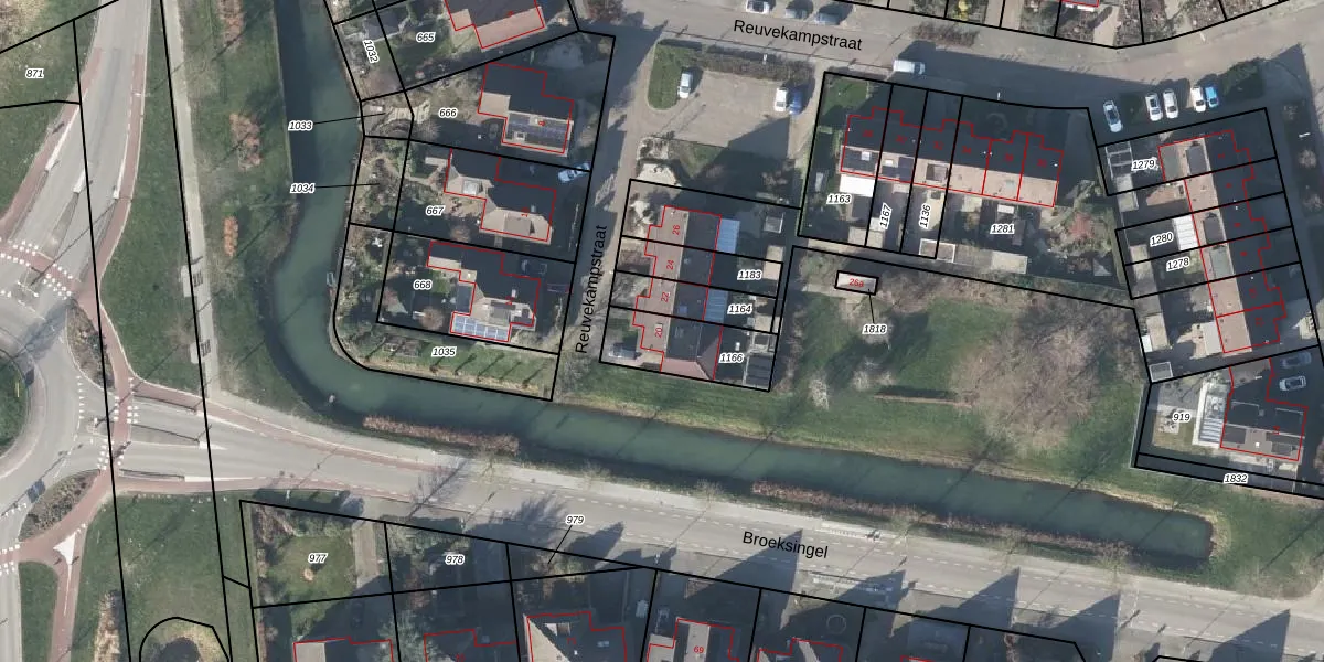 Reuvekampstraat 20 is gelegen op kadastraal perceel HTR00O1166. Deze kadastrale aanduiding is uniek en wordt gebruikt door het Kadaster om eigendomsrechten en andere zakelijke rechten vast te leggen. Het perceel maakt onderdeel uit van de kadastrale gemeente Heteren.