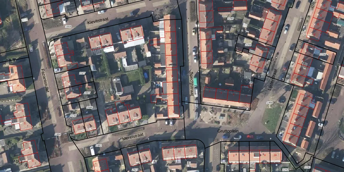 Spechtstraat 26 is gelegen op kadastraal perceel DRI00C2447. Deze kadastrale aanduiding is uniek en wordt gebruikt door het Kadaster om eigendomsrechten en andere zakelijke rechten vast te leggen. Het perceel maakt onderdeel uit van de kadastrale gemeente Driel.