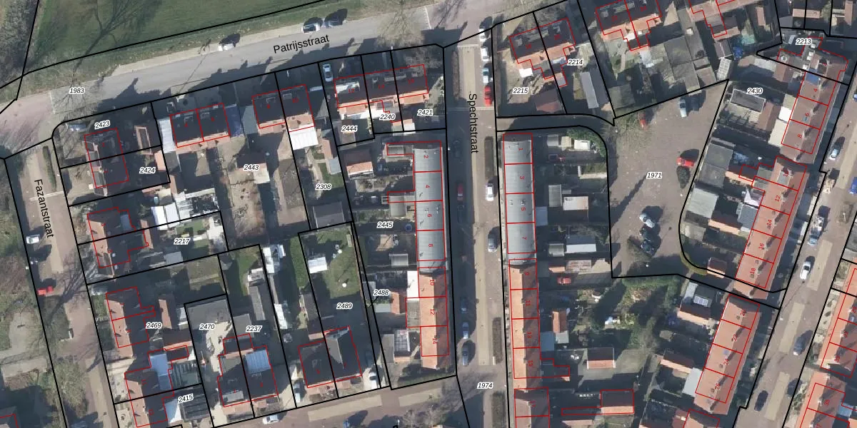 Spechtstraat 6 is gelegen op kadastraal perceel DRI00C2445. Deze kadastrale aanduiding is uniek en wordt gebruikt door het Kadaster om eigendomsrechten en andere zakelijke rechten vast te leggen. Het perceel maakt onderdeel uit van de kadastrale gemeente Driel.