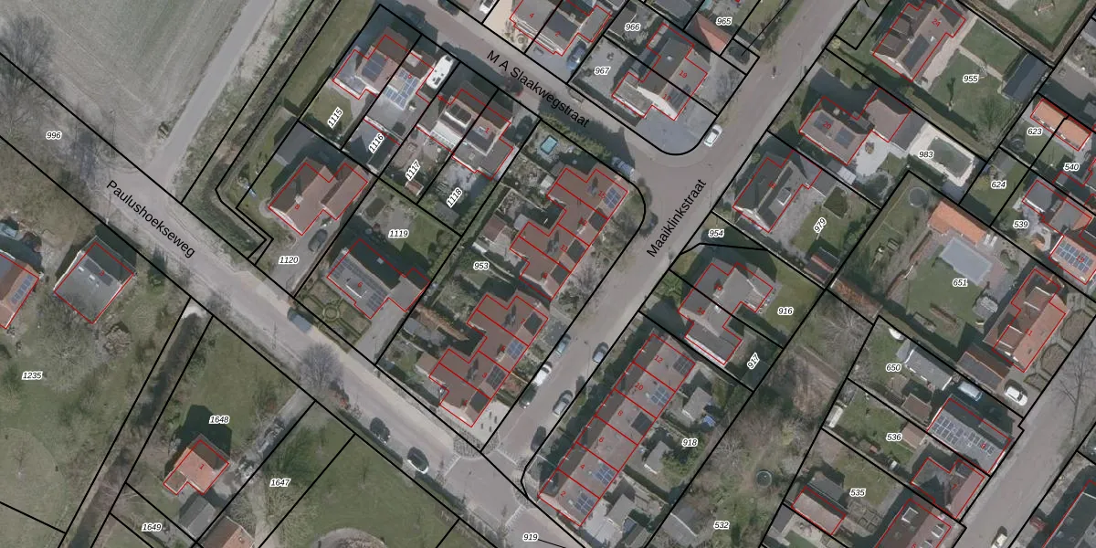 Het perceel waarop Maaiklinkstraat 9 staat heeft een oppervlakte van 1415 m². Dit is een zeer groot perceel. De perceeloppervlakte wordt geregistreerd door het Kadaster. Gedetailleerde informatie over de maten van dit perceel kunt u vinden in het rapport Kadastrale kaart met maatvoering van Maaiklinkstraat 9.