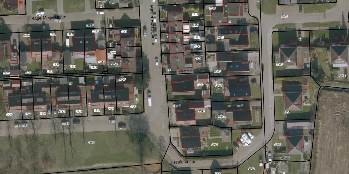 Het perceel waarop Master Hofstrastrjitte 47 staat heeft een oppervlakte van 373 m². Dit is een groot perceel. De perceeloppervlakte wordt geregistreerd door het Kadaster. Gedetailleerde informatie over de maten van dit perceel kunt u vinden in het rapport Kadastrale kaart met maatvoering van Master Hofstrastrjitte 47.