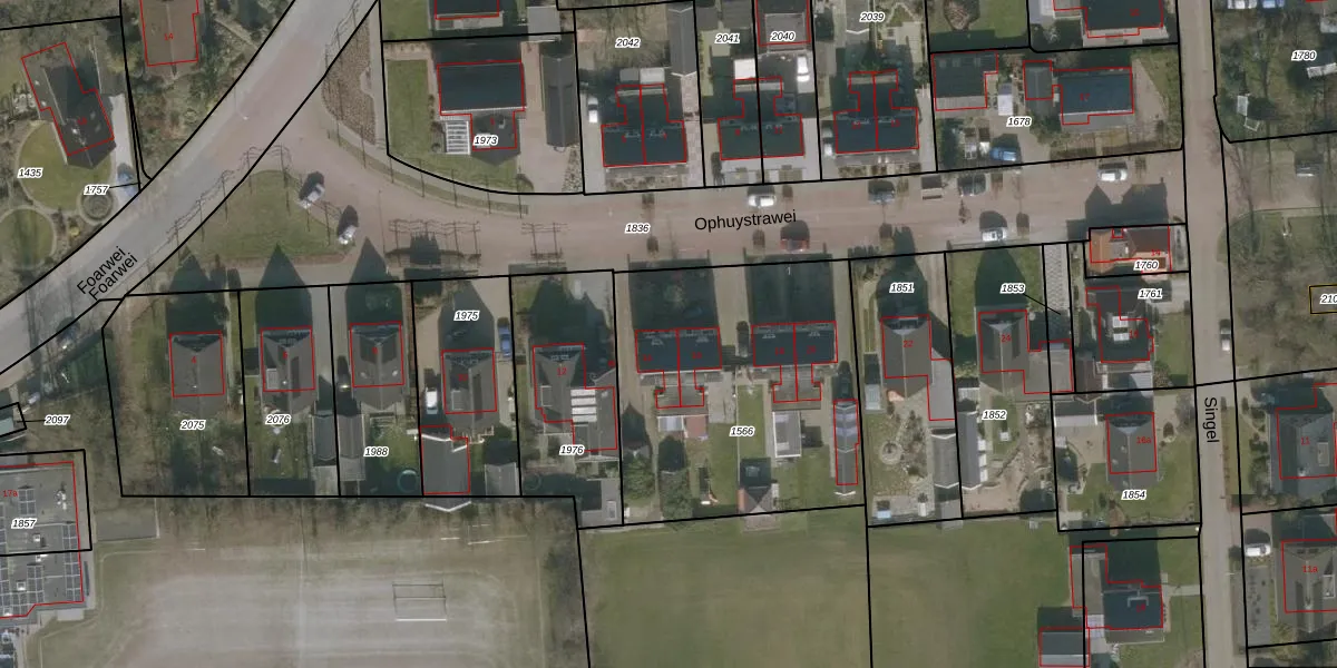 Het perceel waarop Ophuystrawei 14 staat heeft een oppervlakte van 1320 m². Dit is een zeer groot perceel. De perceeloppervlakte wordt geregistreerd door het Kadaster. Gedetailleerde informatie over de maten van dit perceel kunt u vinden in het rapport Kadastrale kaart met maatvoering van Ophuystrawei 14.