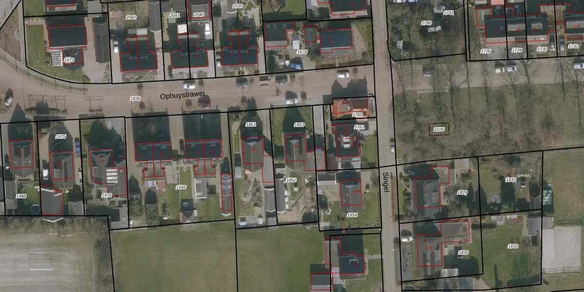 Het perceel waarop Ophuystrawei 24 staat heeft een oppervlakte van 573 m². Dit is een groot perceel. De perceeloppervlakte wordt geregistreerd door het Kadaster. Gedetailleerde informatie over de maten van dit perceel kunt u vinden in het rapport Kadastrale kaart met maatvoering van Ophuystrawei 24.