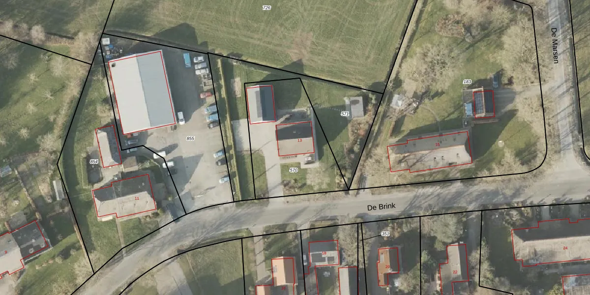 De Brink 13 is gelegen op kadastraal perceel BLN00S570. Deze kadastrale aanduiding is uniek en wordt gebruikt door het Kadaster om eigendomsrechten en andere zakelijke rechten vast te leggen. Het perceel maakt onderdeel uit van de kadastrale gemeente Beilen.