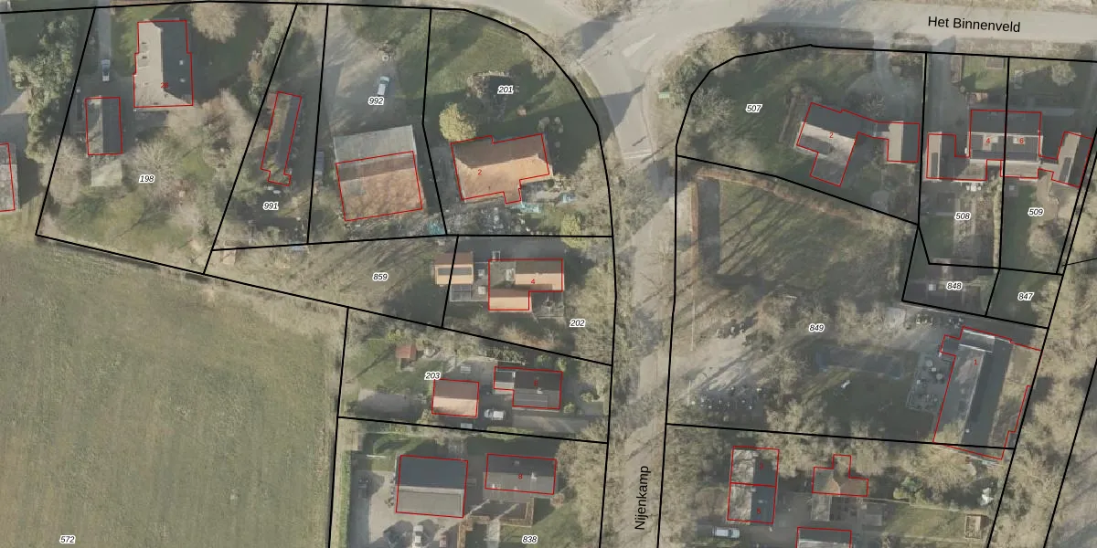 Het perceel waarop Nijenkamp 4 staat heeft een oppervlakte van 616 m². Dit is een groot perceel. De perceeloppervlakte wordt geregistreerd door het Kadaster. Gedetailleerde informatie over de maten van dit perceel kunt u vinden in het rapport Kadastrale kaart met maatvoering van Nijenkamp 4.