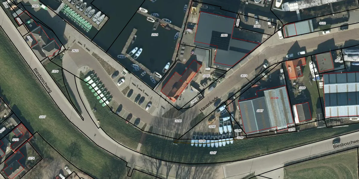 Havenkade 25-A is gelegen op kadastraal perceel MDE01T1005. Deze kadastrale aanduiding is uniek en wordt gebruikt door het Kadaster om eigendomsrechten en andere zakelijke rechten vast te leggen. Het perceel maakt onderdeel uit van de kadastrale gemeente Made en Drimmelen.