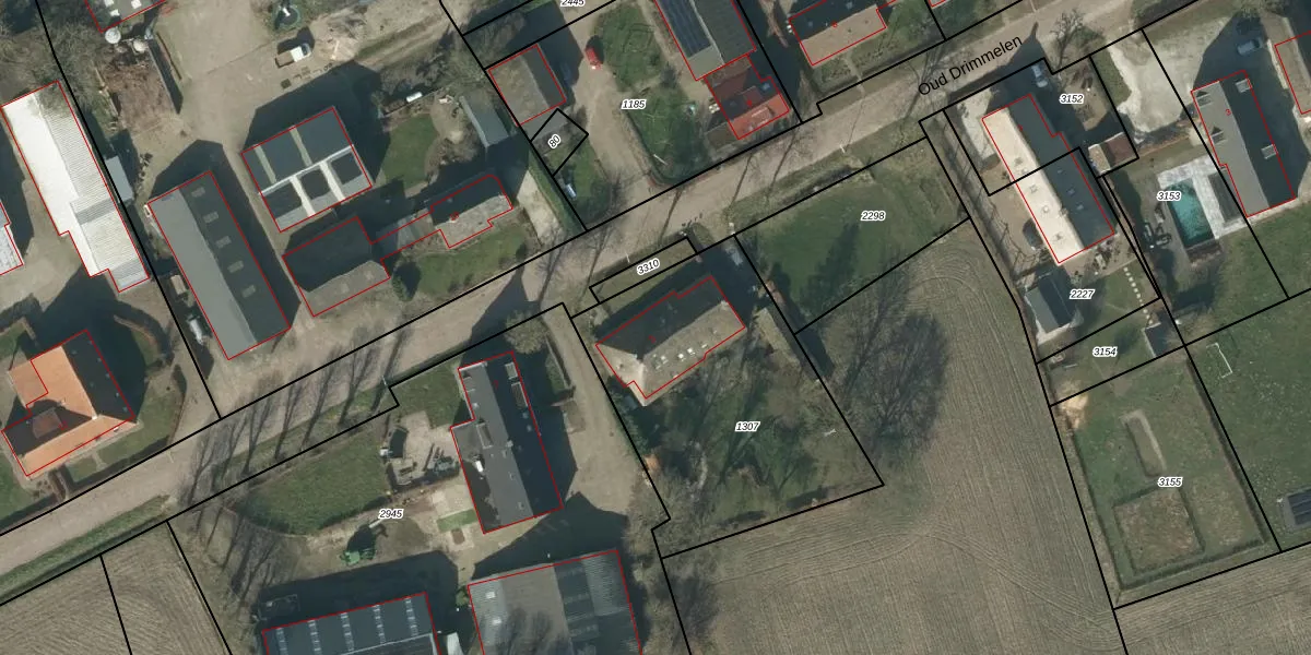 Het perceel waarop Oud Drimmelen 5 staat heeft een oppervlakte van 1285 m². Dit is een zeer groot perceel. De perceeloppervlakte wordt geregistreerd door het Kadaster. Gedetailleerde informatie over de maten van dit perceel kunt u vinden in het rapport Kadastrale kaart met maatvoering van Oud Drimmelen 5.