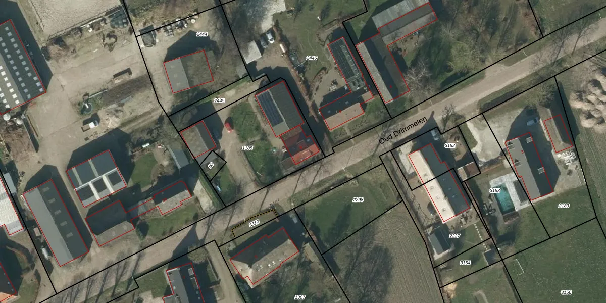 Het perceel waarop Oud Drimmelen 9 staat heeft een oppervlakte van 1085 m². Dit is een zeer groot perceel. De perceeloppervlakte wordt geregistreerd door het Kadaster. Gedetailleerde informatie over de maten van dit perceel kunt u vinden in het rapport Kadastrale kaart met maatvoering van Oud Drimmelen 9.