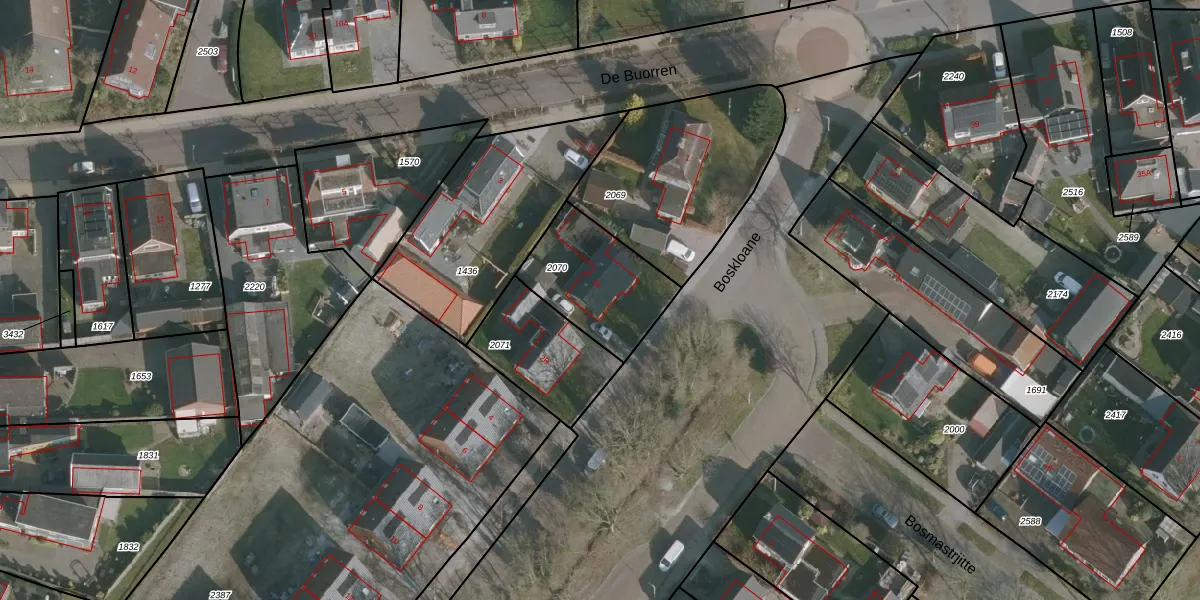Het perceel waarop Boskloane 2-A staat heeft een oppervlakte van 360 m². Dit is een groot perceel. De perceeloppervlakte wordt geregistreerd door het Kadaster. Gedetailleerde informatie over de maten van dit perceel kunt u vinden in het rapport Kadastrale kaart met maatvoering van Boskloane 2-A.