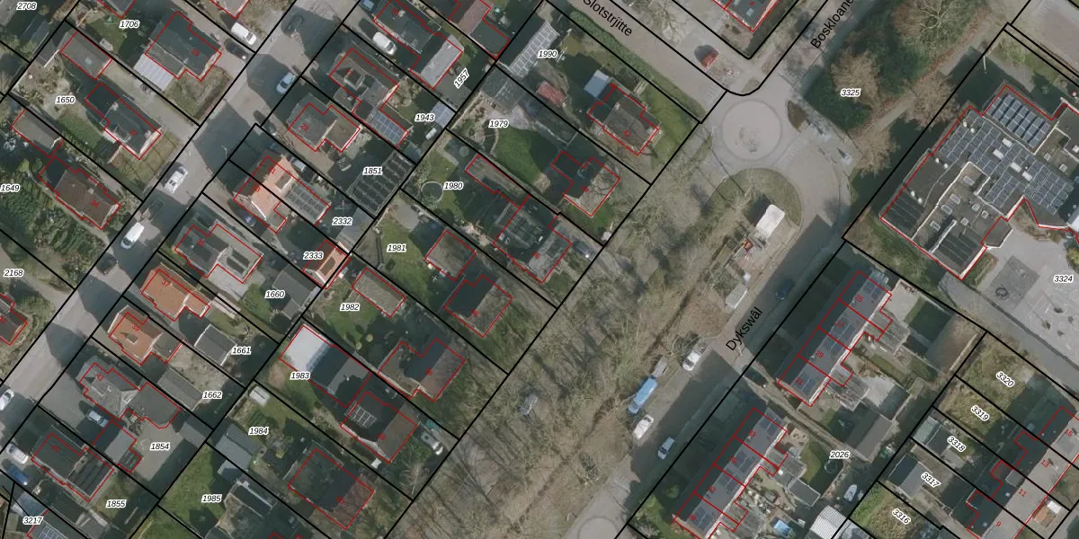 Het perceel waarop Boskloane 46 staat heeft een oppervlakte van 555 m². Dit is een groot perceel. De perceeloppervlakte wordt geregistreerd door het Kadaster. Gedetailleerde informatie over de maten van dit perceel kunt u vinden in het rapport Kadastrale kaart met maatvoering van Boskloane 46.