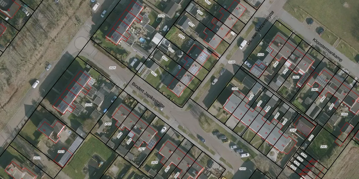 Gebruik de zoekbalk of klik op een perceel voor informatie over de adressen binnen dit perceel.