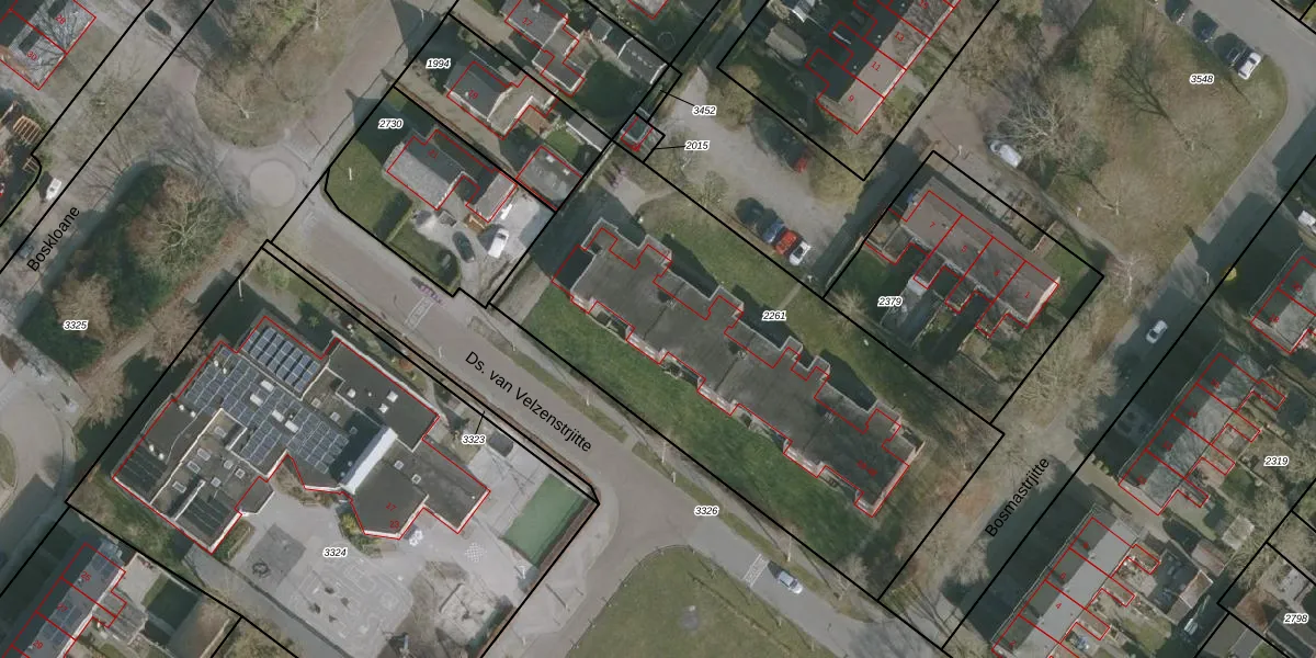 Het perceel waarop Ds. van Velzenstrjitte 22 staat heeft een oppervlakte van 2385 m². Dit is een zeer groot perceel. De perceeloppervlakte wordt geregistreerd door het Kadaster. Gedetailleerde informatie over de maten van dit perceel kunt u vinden in het rapport Kadastrale kaart met maatvoering van Ds. van Velzenstrjitte 22.