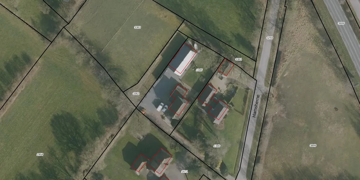 Het perceel waarop Hamsherne 5 staat heeft een oppervlakte van 1280 m². Dit is een zeer groot perceel. De perceeloppervlakte wordt geregistreerd door het Kadaster. Gedetailleerde informatie over de maten van dit perceel kunt u vinden in het rapport Kadastrale kaart met maatvoering van Hamsherne 5.