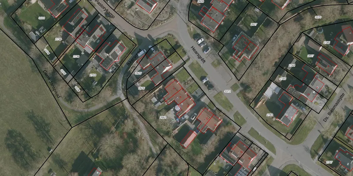 Het perceel waarop Hearsgrêft 6 staat heeft een oppervlakte van 1840 m². Dit is een zeer groot perceel. De perceeloppervlakte wordt geregistreerd door het Kadaster. Gedetailleerde informatie over de maten van dit perceel kunt u vinden in het rapport Kadastrale kaart met maatvoering van Hearsgrêft 6.