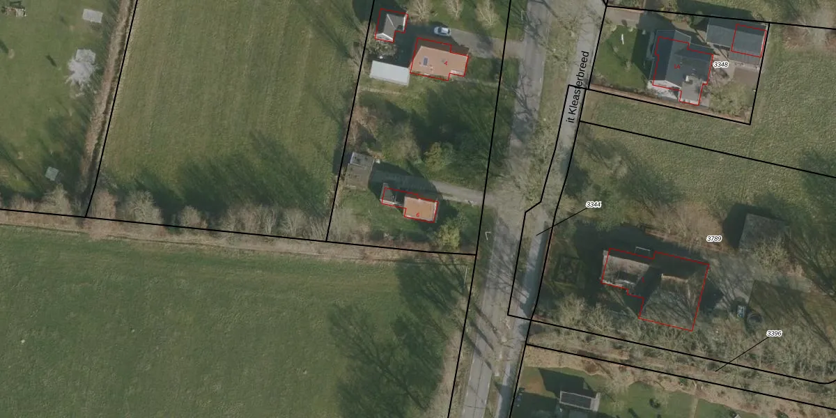 Het perceel waarop it Kleasterbreed 6 staat heeft een oppervlakte van 3695 m². Dit is een zeer groot perceel. De perceeloppervlakte wordt geregistreerd door het Kadaster. Gedetailleerde informatie over de maten van dit perceel kunt u vinden in het rapport Kadastrale kaart met maatvoering van it Kleasterbreed 6.