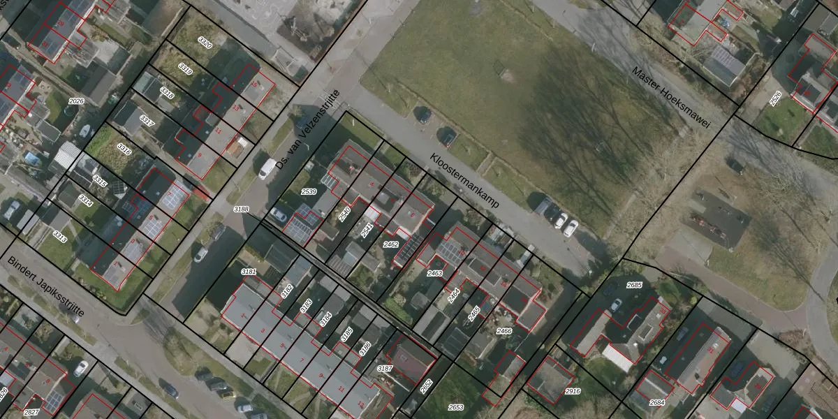 Gebruik de zoekbalk of klik op een perceel voor informatie over de adressen binnen dit perceel.