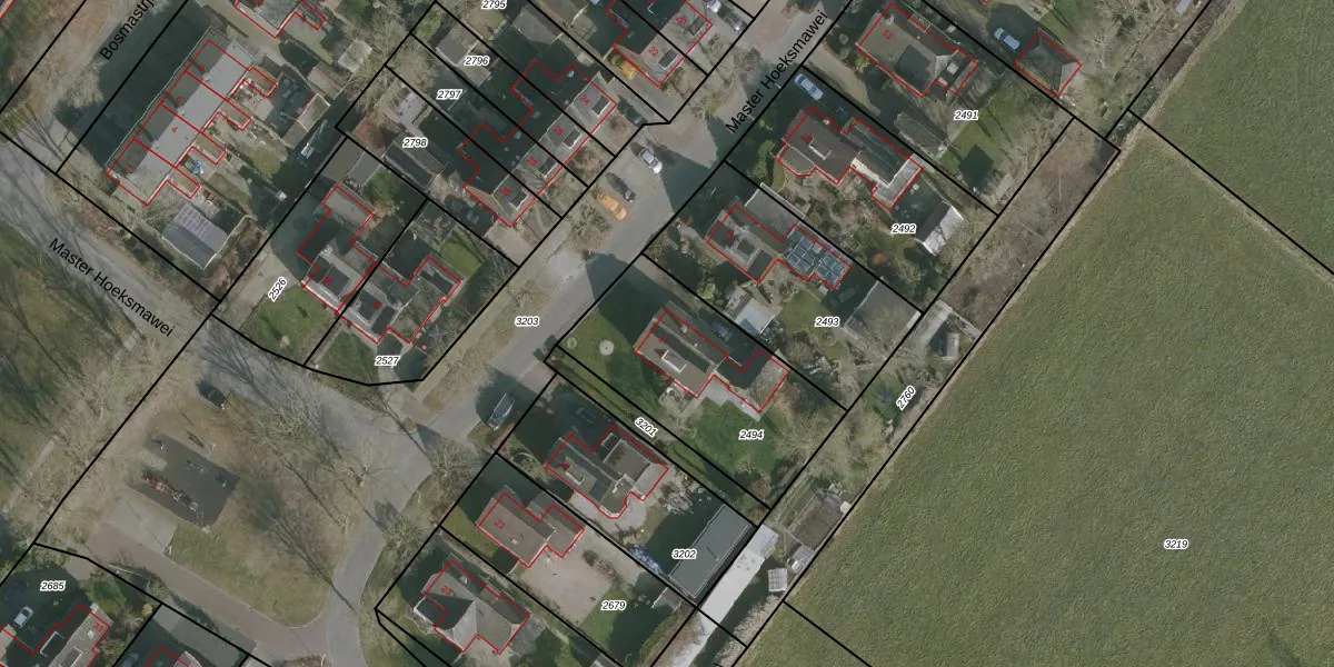 Gebruik de zoekbalk of klik op een perceel voor informatie over de adressen binnen dit perceel.