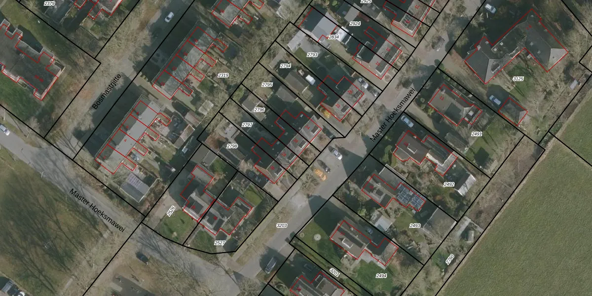 Gebruik de zoekbalk of klik op een perceel voor informatie over de adressen binnen dit perceel.