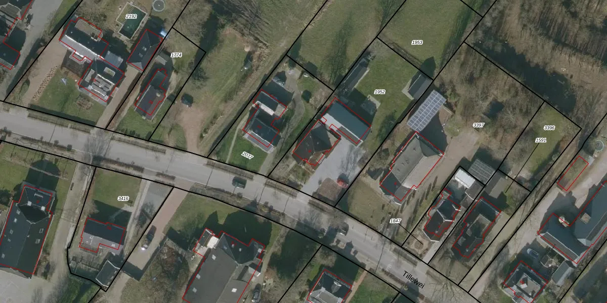 Het perceel waarop Tillewei 8 staat heeft een oppervlakte van 1310 m². Dit is een zeer groot perceel. De perceeloppervlakte wordt geregistreerd door het Kadaster. Gedetailleerde informatie over de maten van dit perceel kunt u vinden in het rapport Kadastrale kaart met maatvoering van Tillewei 8.