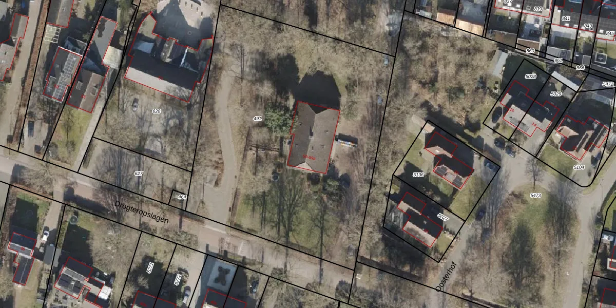 Het perceel waarop Drogteropslagen 59 staat heeft een oppervlakte van 4379 m². Dit is een zeer groot perceel. De perceeloppervlakte wordt geregistreerd door het Kadaster. Gedetailleerde informatie over de maten van dit perceel kunt u vinden in het rapport Kadastrale kaart met maatvoering van Drogteropslagen 59.