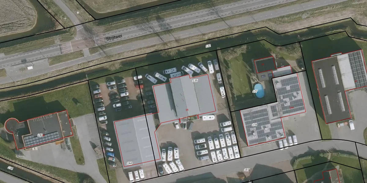 Het adres ligt op het perceel DRP00-E-135, dat zich in de kadastrale gemeente Dronrijp bevindt. De gemiddelde perceelgrootte in Dronrijp is 6007,11 m². Dit perceel is kleiner: de perceeloppervlakte bedraagt 2753 m². Het kleinste perceel in de kadastrale gemeente is 1 m² groot. De grootste perceeloppervlakte is 16,2 ha. Dit is het enige adres dat aanwezig is op het perceel. In de Basisregistratie Kadaster (BRK) werden de grenzen van het perceel geregistreerd op 31-05-2017.