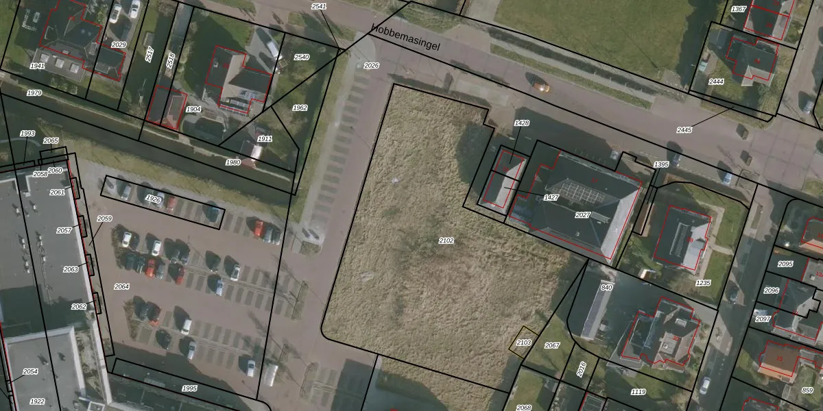 Het adres is gelegen op perceel 2102 in de sectie B en de kadastrale gemeente Dronrijp. De kadastrale aanduiding is aldus DRP00-B-2102. Het perceel is kleiner dan gemiddeld in Dronrijp. Het perceel is 2660 m² groot, terwijl het gemiddelde ligt op 6007,11 m². Het grootste perceel in de kadastrale gemeente is 16,2 ha. Het kleinste perceel heeft een oppervlakte van 1 m². Op het perceel liggen in totaal 28 adressen. De huidige grenzen van het perceel zijn digitaal in de Basisregistratie Kadaster (BRK) geregistreerd op 16-10-2025.