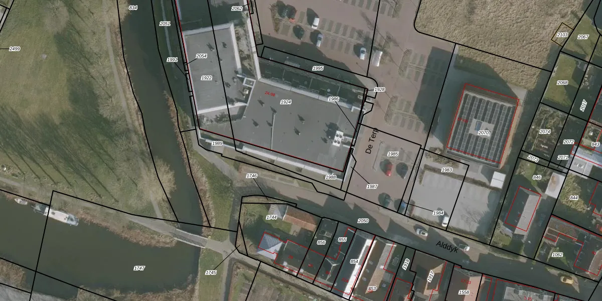 Het perceel waarop De Terp 42 staat heeft een oppervlakte van 1946 m². Dit is een zeer groot perceel. De perceeloppervlakte wordt geregistreerd door het Kadaster. Gedetailleerde informatie over de maten van dit perceel kunt u vinden in het rapport Kadastrale kaart met maatvoering van De Terp 42.