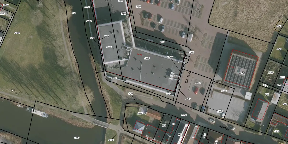 Het perceel waarop De Terp 84 staat heeft een oppervlakte van 1946 m². Dit is een zeer groot perceel. De perceeloppervlakte wordt geregistreerd door het Kadaster. Gedetailleerde informatie over de maten van dit perceel kunt u vinden in het rapport Kadastrale kaart met maatvoering van De Terp 84.