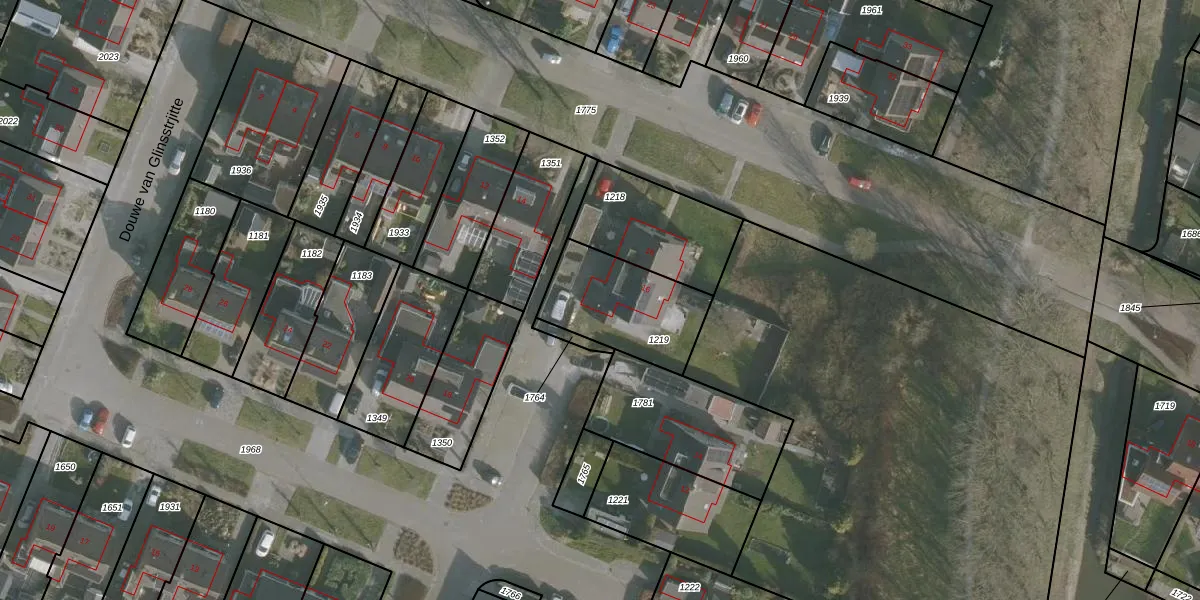 Het perceel waarop Douwe van Glinsstrjitte 16 staat heeft een oppervlakte van 376 m². Dit is een groot perceel. De perceeloppervlakte wordt geregistreerd door het Kadaster. Gedetailleerde informatie over de maten van dit perceel kunt u vinden in het rapport Kadastrale kaart met maatvoering van Douwe van Glinsstrjitte 16.
