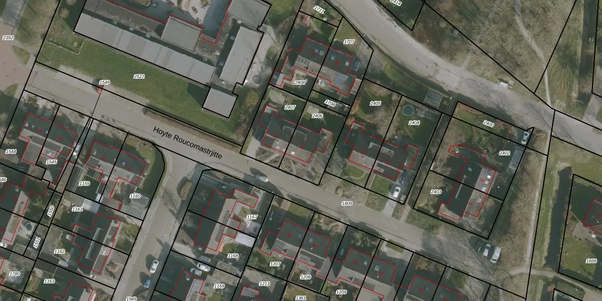 Gebruik de zoekbalk of klik op een perceel voor informatie over de adressen binnen dit perceel.