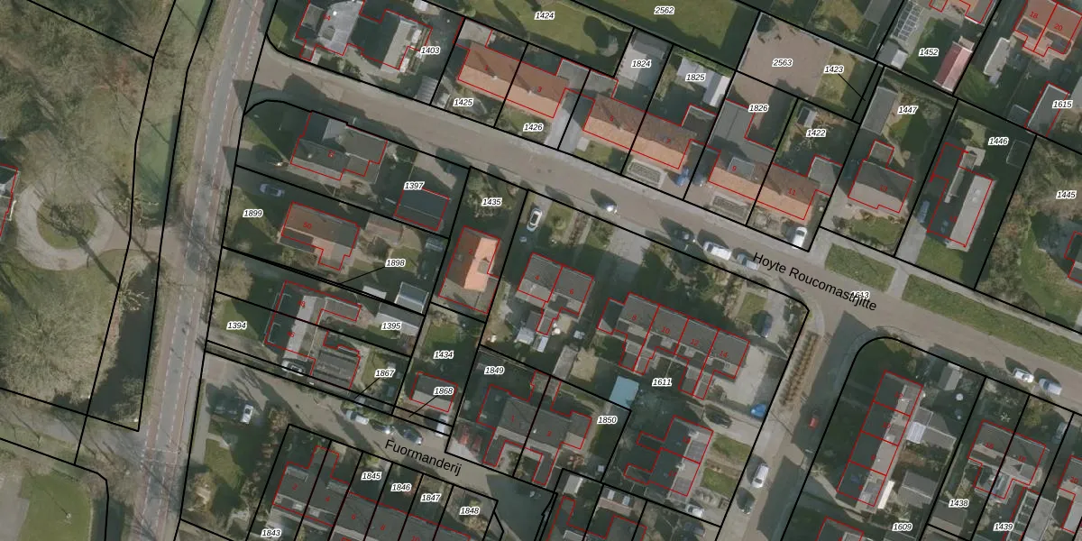 Het perceel waarop Hoyte Roucomastrjitte 4 staat heeft een oppervlakte van 1990 m². Dit is een zeer groot perceel. De perceeloppervlakte wordt geregistreerd door het Kadaster. Gedetailleerde informatie over de maten van dit perceel kunt u vinden in het rapport Kadastrale kaart met maatvoering van Hoyte Roucomastrjitte 4.