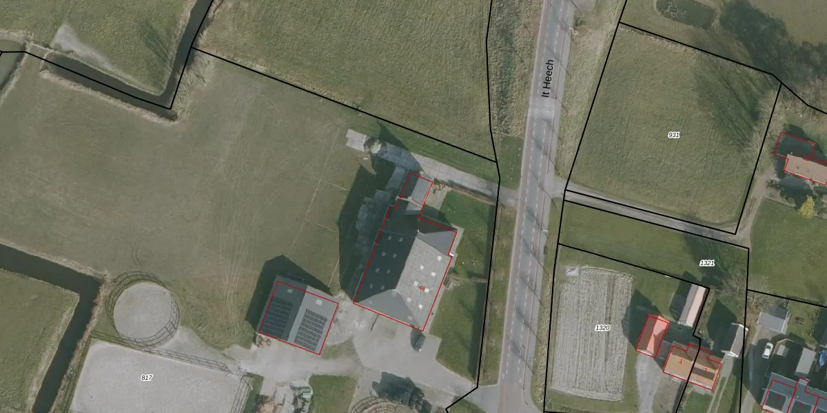 Het perceel waarop It Heech 48 staat heeft een oppervlakte van 1,9 ha. Dit is een zeer groot perceel. De perceeloppervlakte wordt geregistreerd door het Kadaster. Gedetailleerde informatie over de maten van dit perceel kunt u vinden in het rapport Kadastrale kaart met maatvoering van It Heech 48.