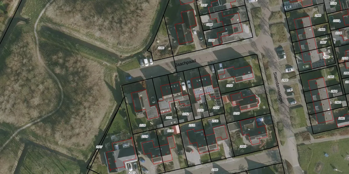 Jaachpaad 5 is gelegen op kadastraal perceel DRP00A2152. Deze kadastrale aanduiding is uniek en wordt gebruikt door het Kadaster om eigendomsrechten en andere zakelijke rechten vast te leggen. Het perceel maakt onderdeel uit van de kadastrale gemeente Dronrijp.