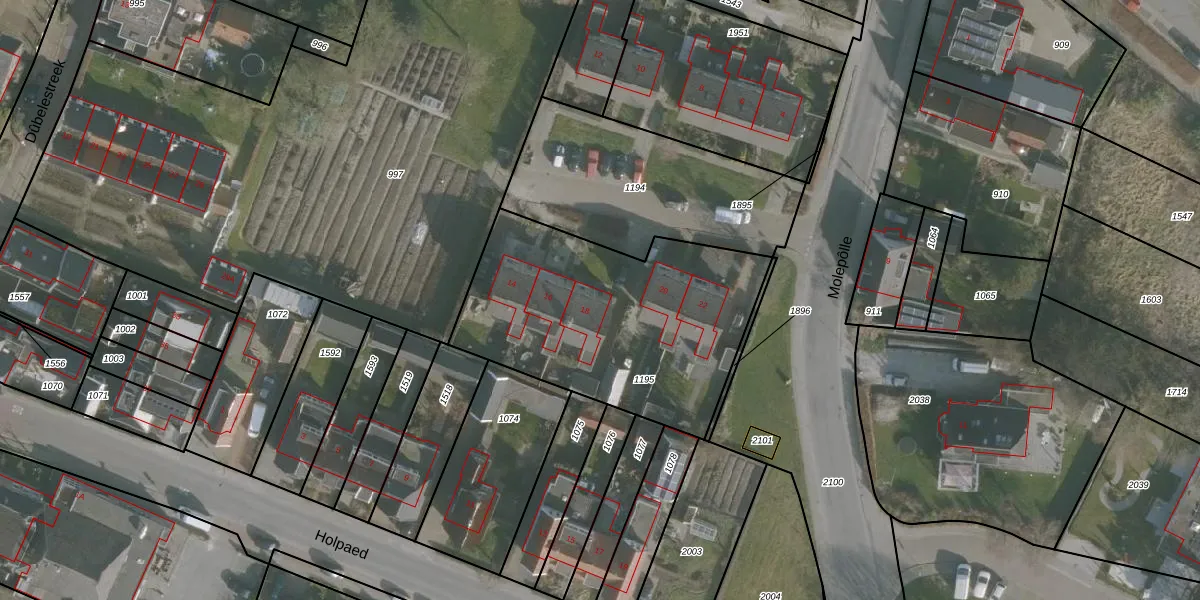 Het perceel waarop Molepôlle 18 staat heeft een oppervlakte van 1233 m². Dit is een zeer groot perceel. De perceeloppervlakte wordt geregistreerd door het Kadaster. Gedetailleerde informatie over de maten van dit perceel kunt u vinden in het rapport Kadastrale kaart met maatvoering van Molepôlle 18.