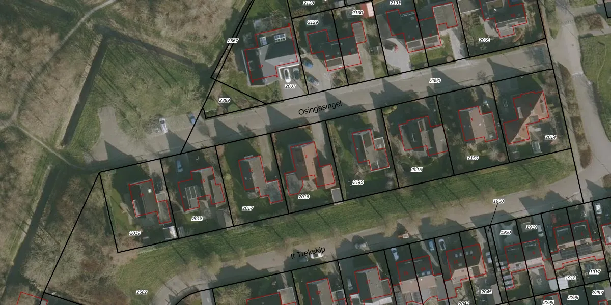 Osingasingel 9 is gelegen op kadastraal perceel DRP00A2016. Deze kadastrale aanduiding is uniek en wordt gebruikt door het Kadaster om eigendomsrechten en andere zakelijke rechten vast te leggen. Het perceel maakt onderdeel uit van de kadastrale gemeente Dronrijp.