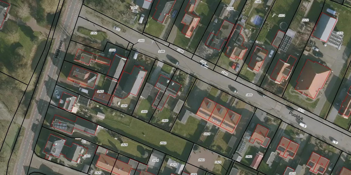 Het perceel waarop Puoldyk 6 staat heeft een oppervlakte van 451 m². Dit is een groot perceel. De perceeloppervlakte wordt geregistreerd door het Kadaster. Gedetailleerde informatie over de maten van dit perceel kunt u vinden in het rapport Kadastrale kaart met maatvoering van Puoldyk 6.