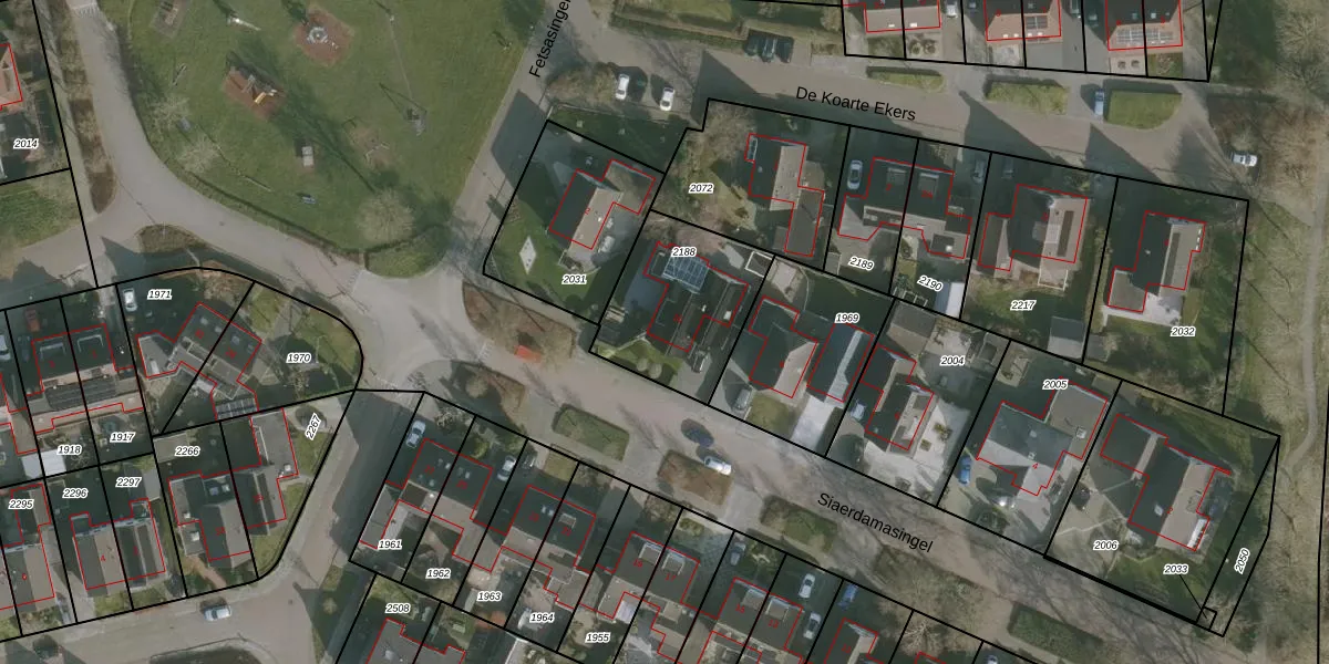 Gebruik de zoekbalk of klik op een perceel voor informatie over de adressen binnen dit perceel.