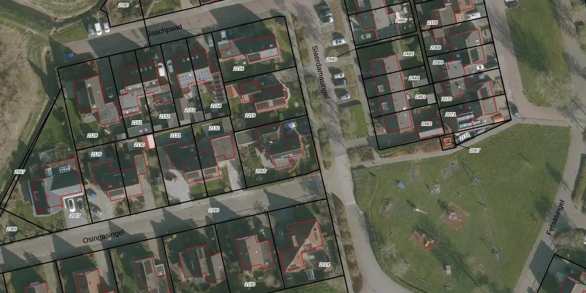 Gebruik de zoekbalk of klik op een perceel voor informatie over de adressen binnen dit perceel.