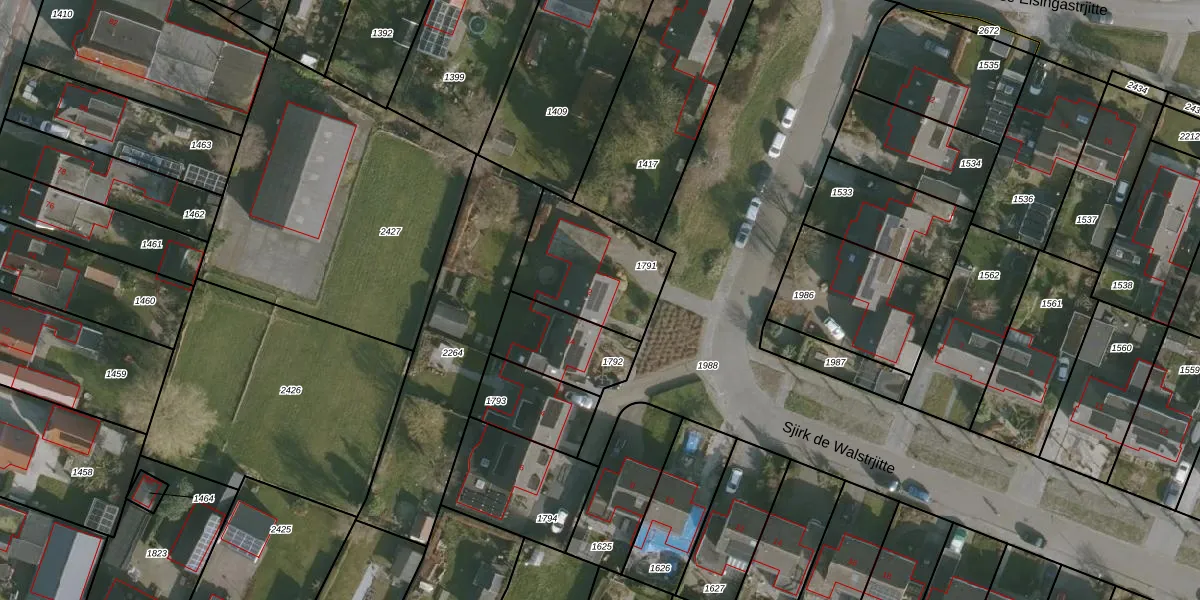 Het perceel waarop Sjirk de Walstrjitte 2 staat heeft een oppervlakte van 405 m². Dit is een groot perceel. De perceeloppervlakte wordt geregistreerd door het Kadaster. Gedetailleerde informatie over de maten van dit perceel kunt u vinden in het rapport Kadastrale kaart met maatvoering van Sjirk de Walstrjitte 2.