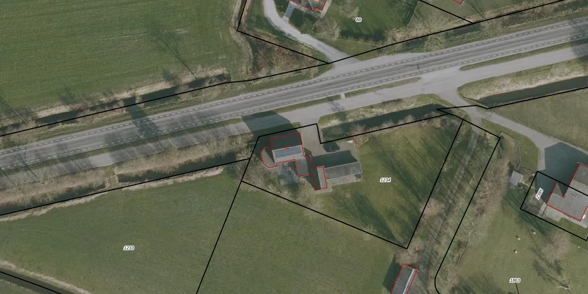 Het adres ligt op het perceel DRP00-A-1234, dat zich in de kadastrale gemeente Dronrijp bevindt. De gemiddelde perceelgrootte in Dronrijp is 6007,11 m². Dit perceel is kleiner: de perceeloppervlakte bedraagt 1955 m². Het grootste perceel in de kadastrale gemeente is 16,2 ha. Het kleinste perceel heeft een oppervlakte van 1 m². Op het perceel bevinden zich geen andere adressen. In de Basisregistratie Kadaster (BRK) werden de grenzen van het perceel geregistreerd op 18-08-2000.