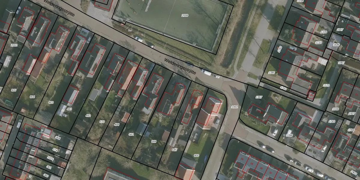 Gebruik de zoekbalk of klik op een perceel voor informatie over de adressen binnen dit perceel.