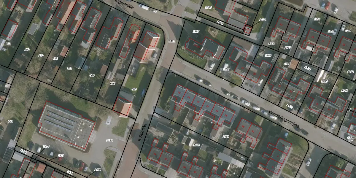Het perceel waarop Welderingsstrjitte 26 staat heeft een oppervlakte van 2953 m². Dit is een zeer groot perceel. De perceeloppervlakte wordt geregistreerd door het Kadaster. Gedetailleerde informatie over de maten van dit perceel kunt u vinden in het rapport Kadastrale kaart met maatvoering van Welderingsstrjitte 26.