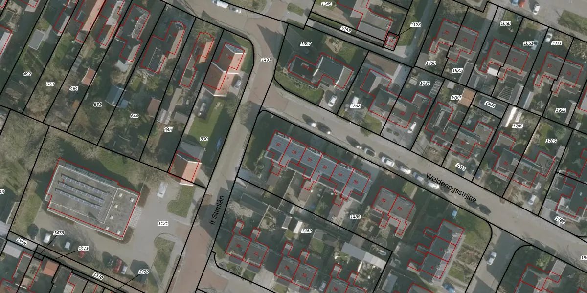 Het perceel waarop Welderingsstrjitte 28 staat heeft een oppervlakte van 2953 m². Dit is een zeer groot perceel. De perceeloppervlakte wordt geregistreerd door het Kadaster. Gedetailleerde informatie over de maten van dit perceel kunt u vinden in het rapport Kadastrale kaart met maatvoering van Welderingsstrjitte 28.