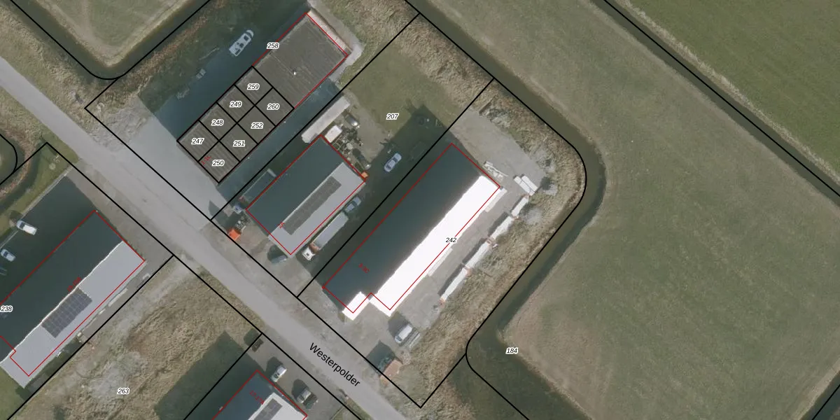 Het perceel waarop Westerpolder 3-A staat heeft een oppervlakte van 2570 m². Dit is een zeer groot perceel. De perceeloppervlakte wordt geregistreerd door het Kadaster. Gedetailleerde informatie over de maten van dit perceel kunt u vinden in het rapport Kadastrale kaart met maatvoering van Westerpolder 3-A.