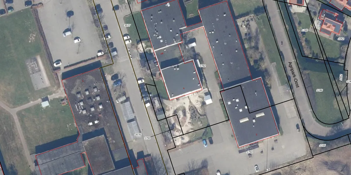 Het perceel waarop Agripark-Oost 4 staat heeft een oppervlakte van 5597 m². Dit is een zeer groot perceel. De perceeloppervlakte wordt geregistreerd door het Kadaster. Gedetailleerde informatie over de maten van dit perceel kunt u vinden in het rapport Kadastrale kaart met maatvoering van Agripark-Oost 4.