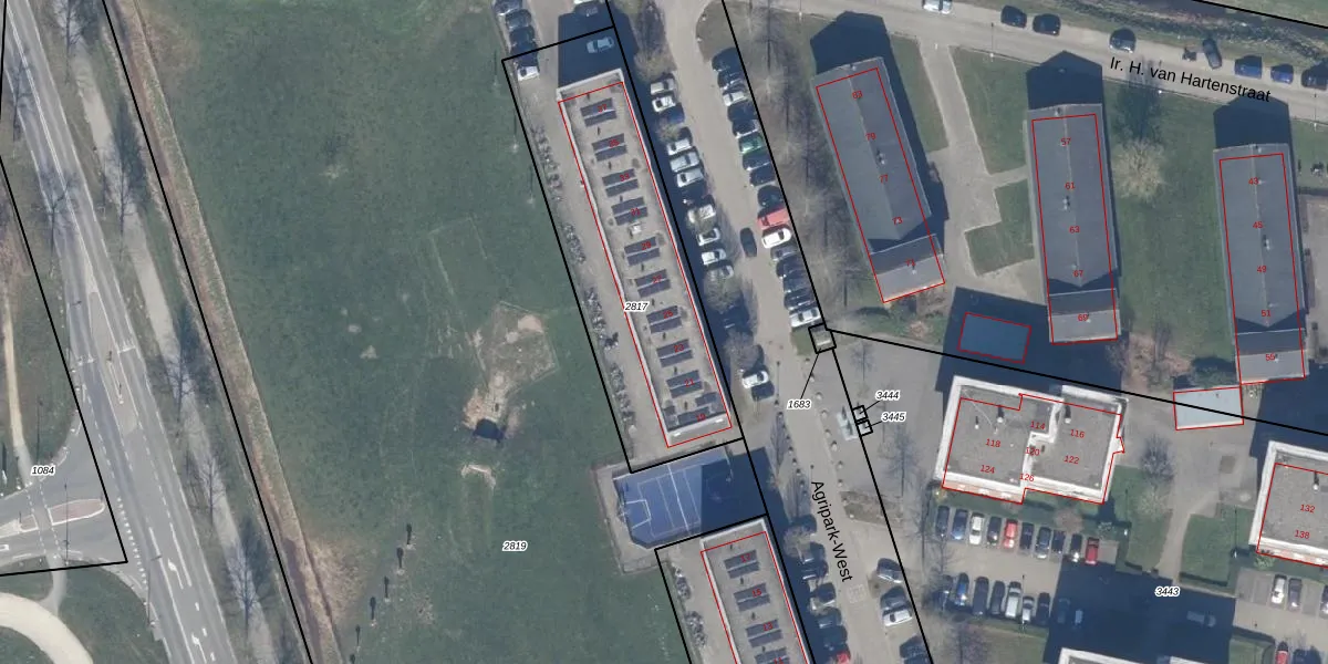 Het perceel waarop Agripark-West 21 staat heeft een oppervlakte van 1150 m². Dit is een zeer groot perceel. De perceeloppervlakte wordt geregistreerd door het Kadaster. Gedetailleerde informatie over de maten van dit perceel kunt u vinden in het rapport Kadastrale kaart met maatvoering van Agripark-West 21.
